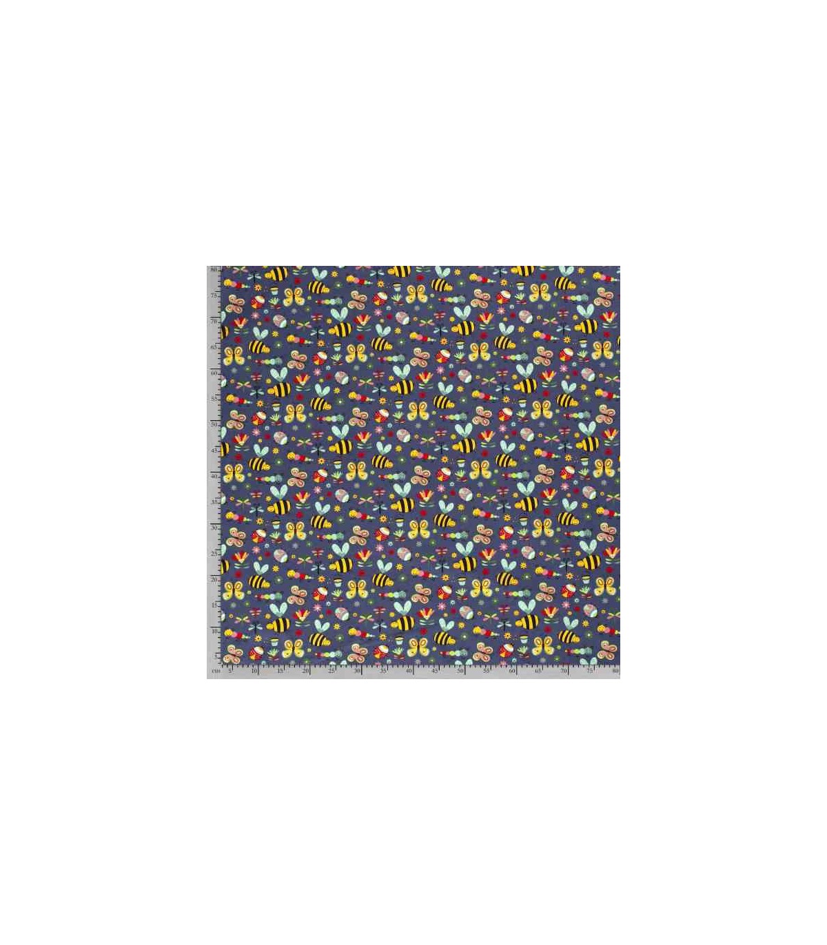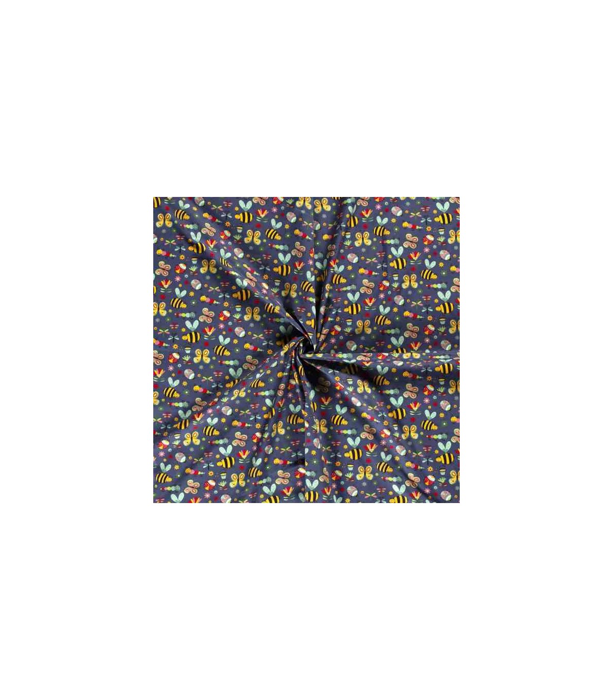 Dapper katoen Garden Party Donkerblauw met insecten