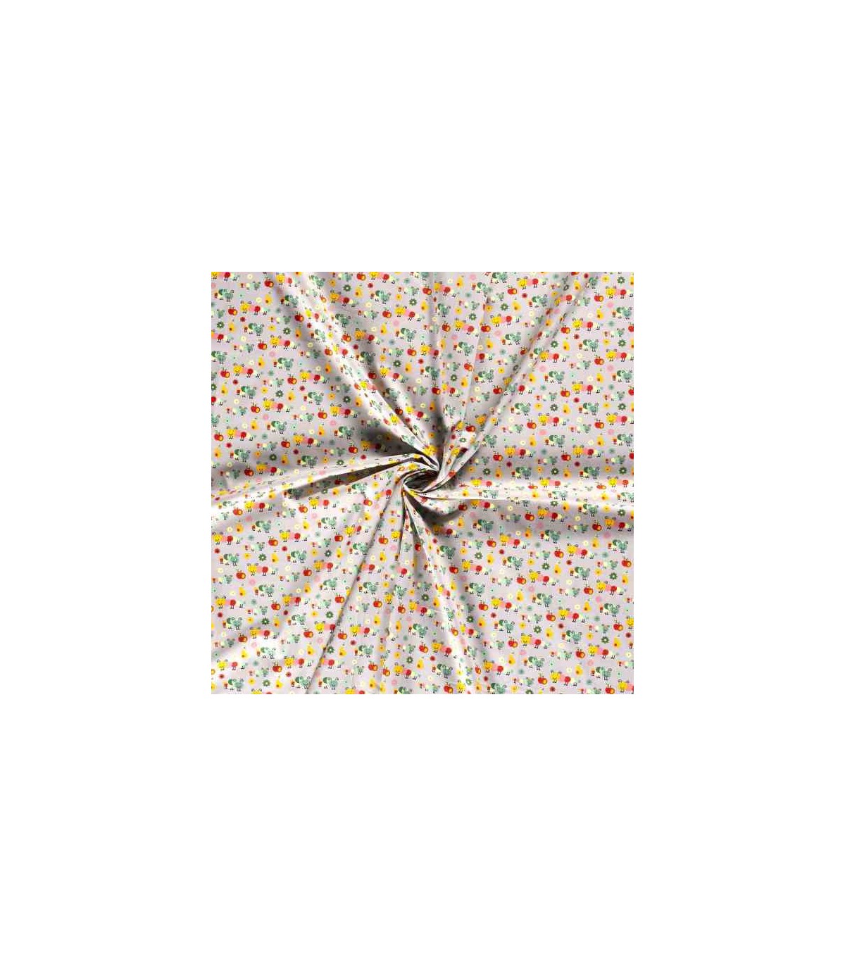 Een lichtgrijze poplin/katoen met een rupsen print