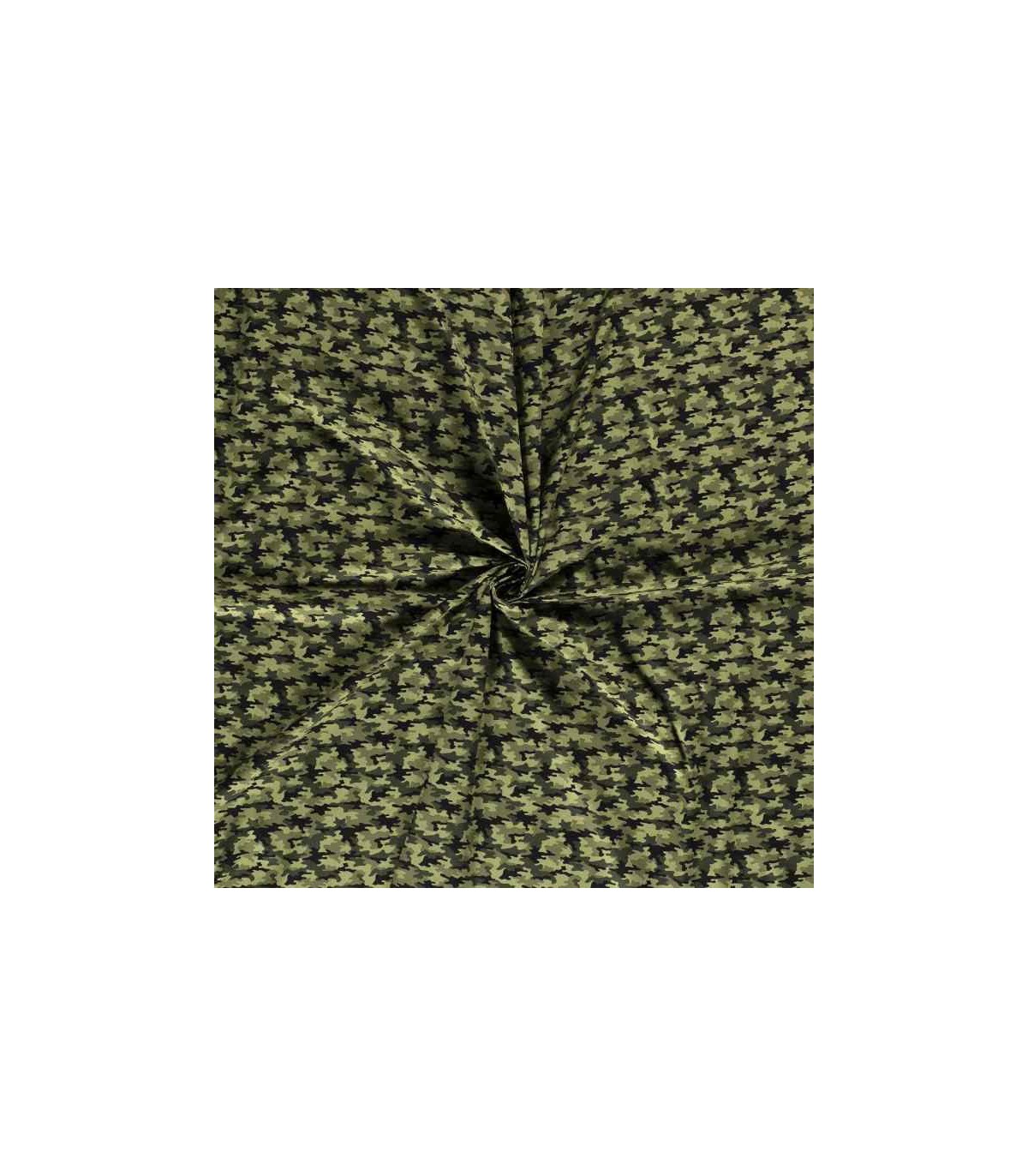 Een groen,zwart gekleurde camouflage print van poplin/katoen