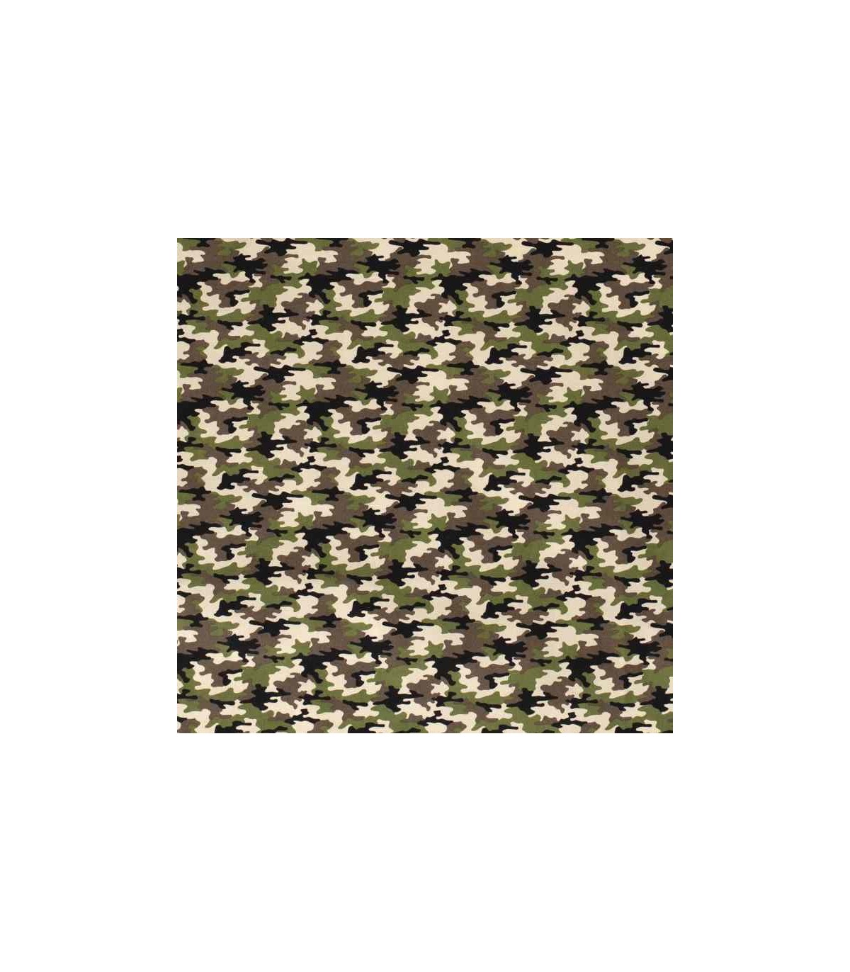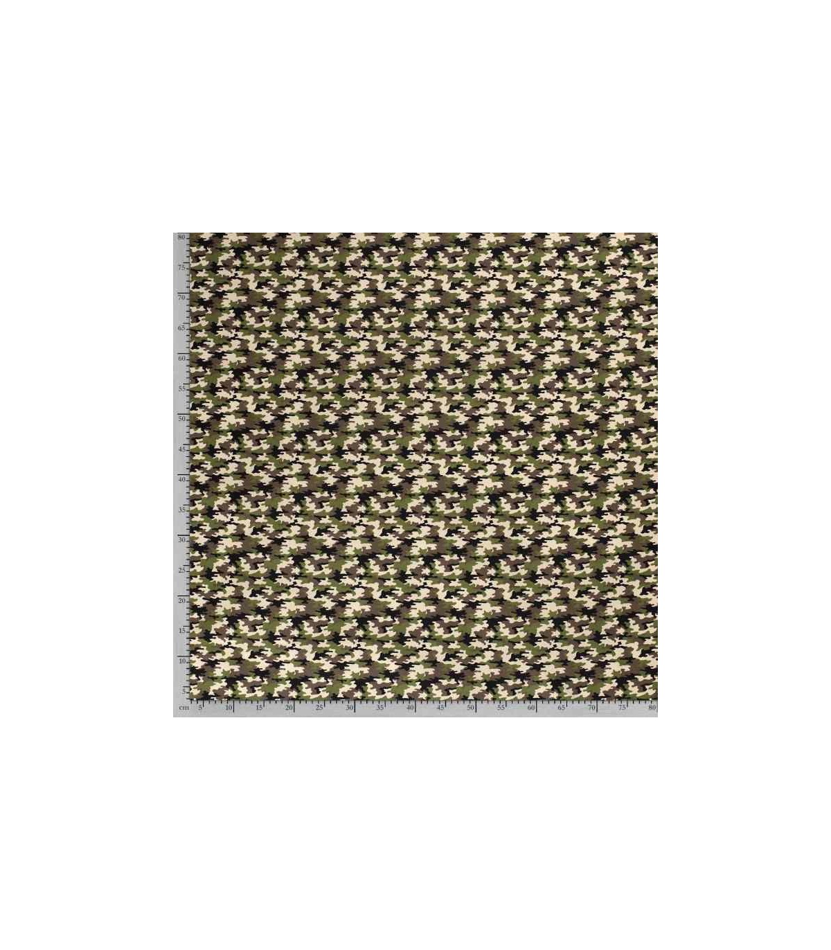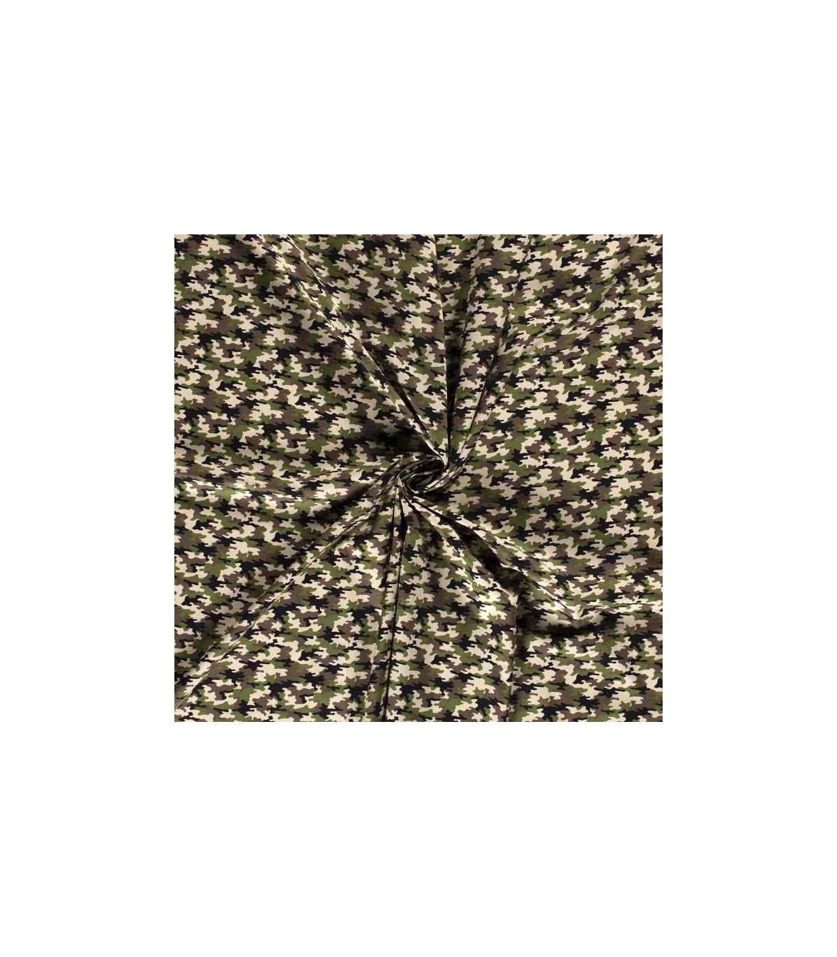 Een groen, zwart, bruin, zand gekleurde camouflage print van poplin/katoen