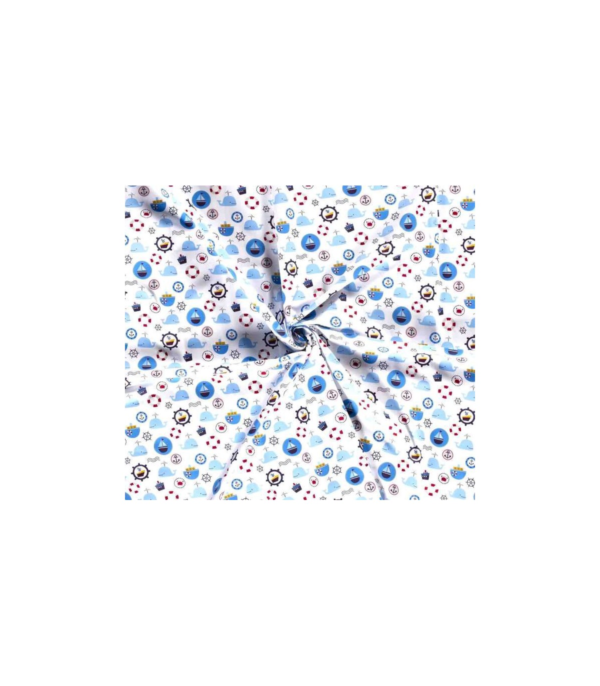Maritiem Witte poplin met zeevaart print 15526-050N