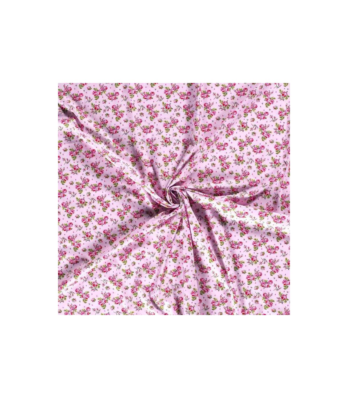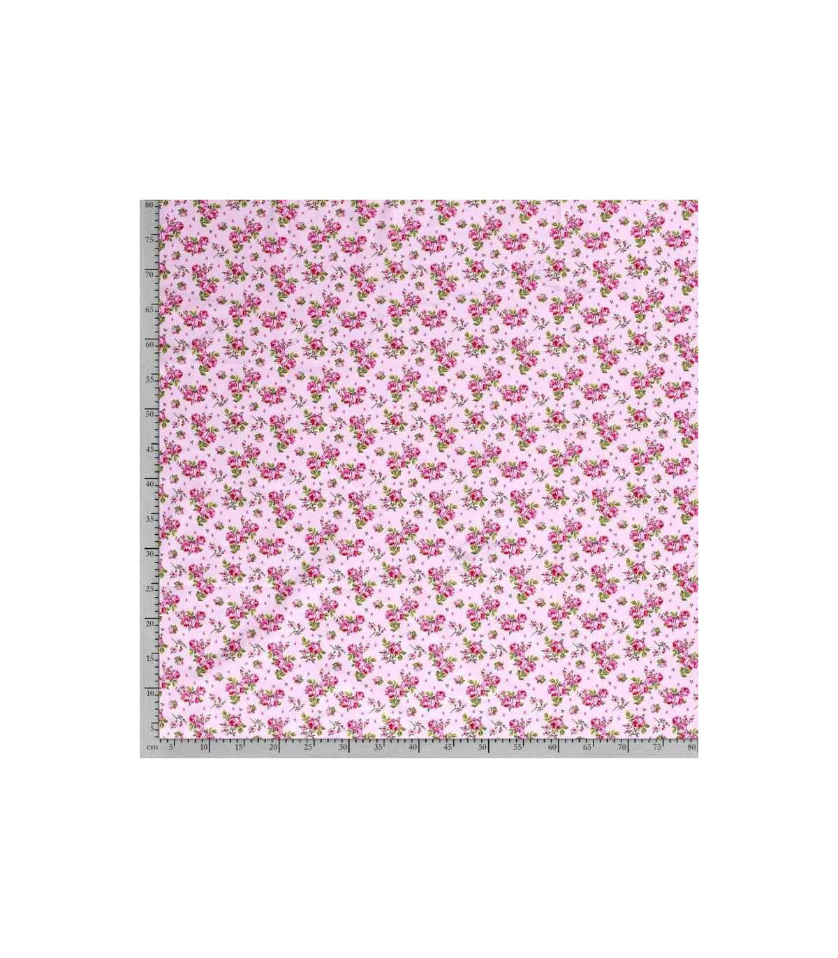 Een oudroze poplin/katoen met rood/roze roosjes