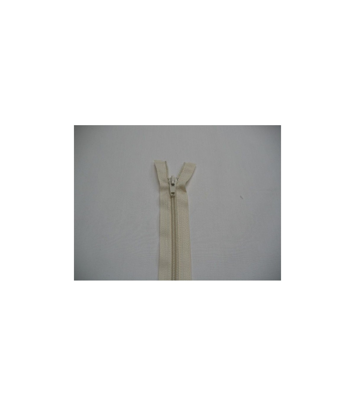 Creme kleurige deelbare fijne rits. 55 cm. lang