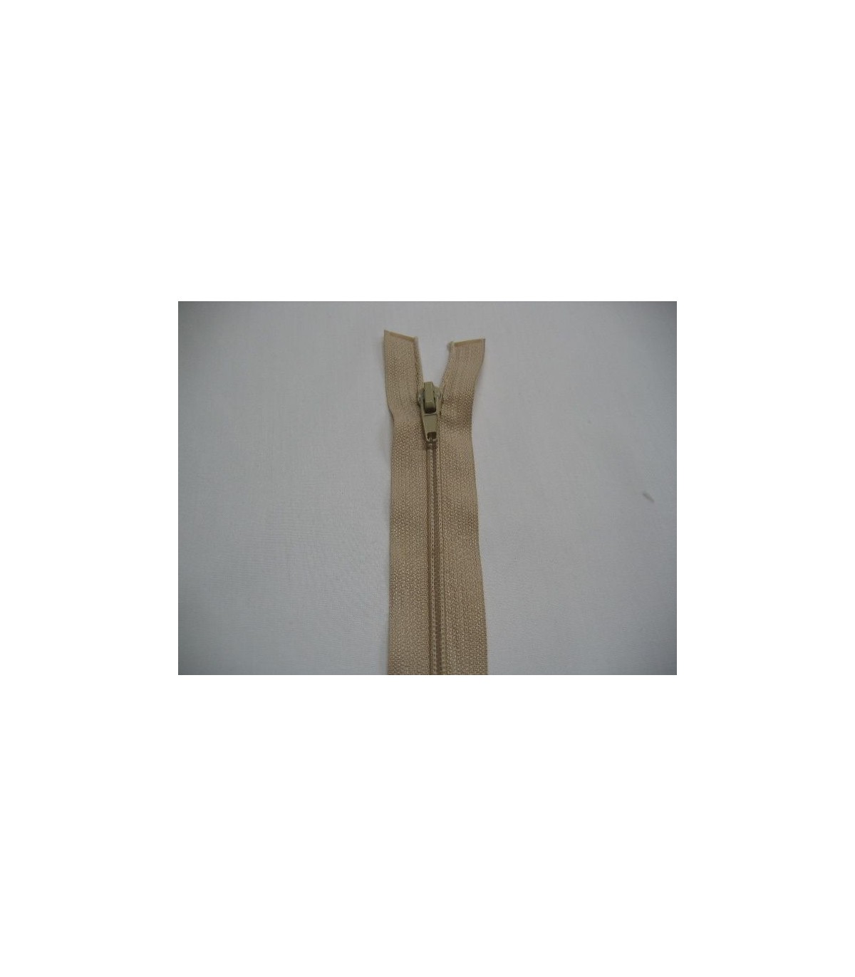 Zand kleurige deelbare fijne rits. 75 cm. lang.