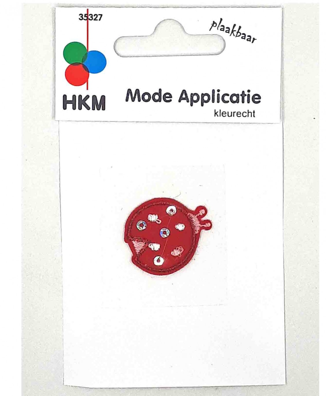 Een opstrijkbaar lieveheersbeestje met een doorsnee van 3 cm