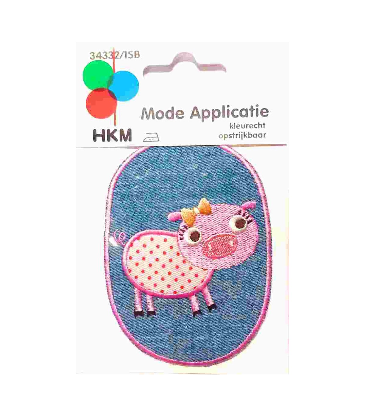 Applicatie jeans ovaal varken en lila randje