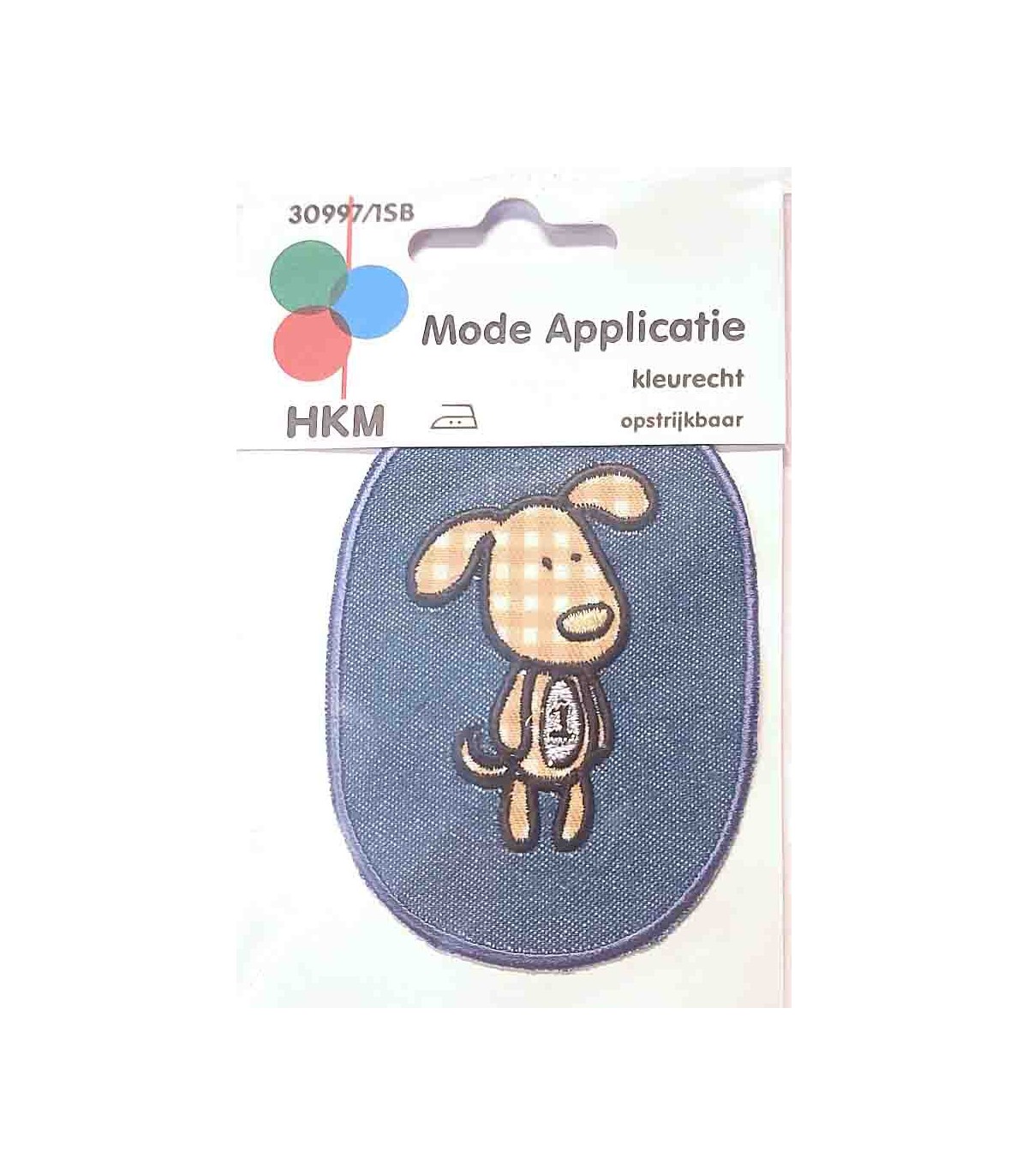Applicatie kniestuk donkerjeans ovaal met geruite hond