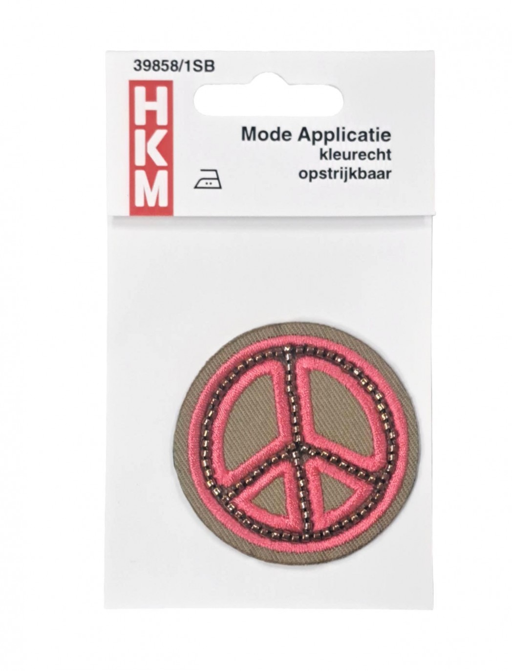 Vredesteken roze/legergroen afgezet met kraaltjes