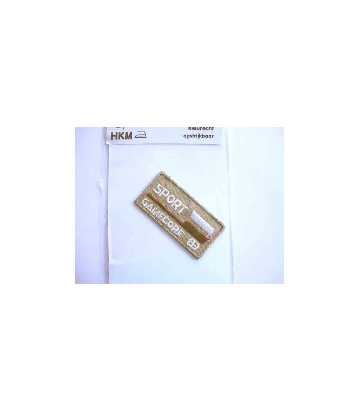 Een opstrijkbare applicatie van 5 x 2.5 cm.