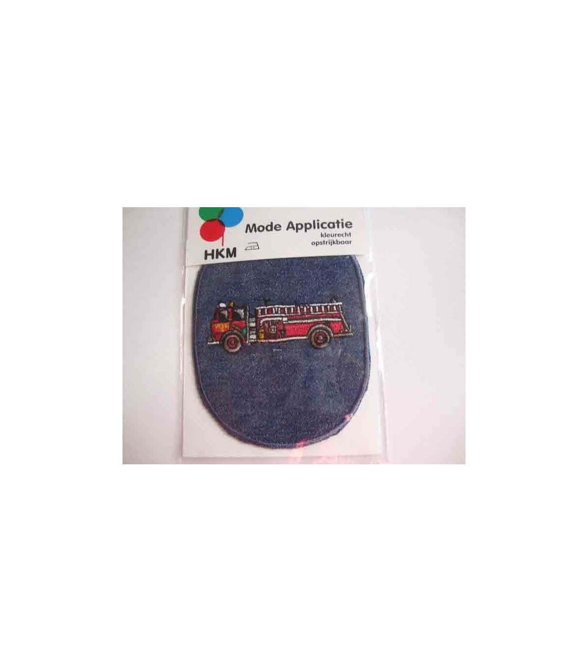 Rode brandweerwagen opstrijkbare applicatie van 12 x 8 cm.