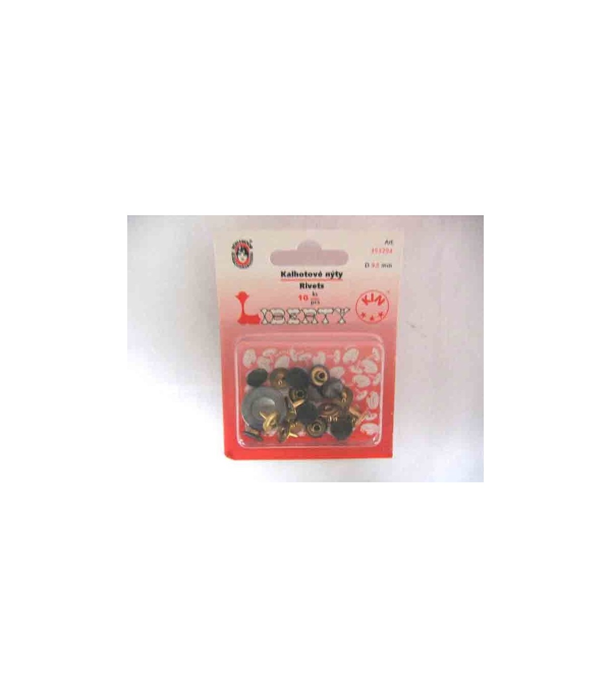 Brons kleurige siernieten met werktuig en op de achterkant de werkbeschrijving.