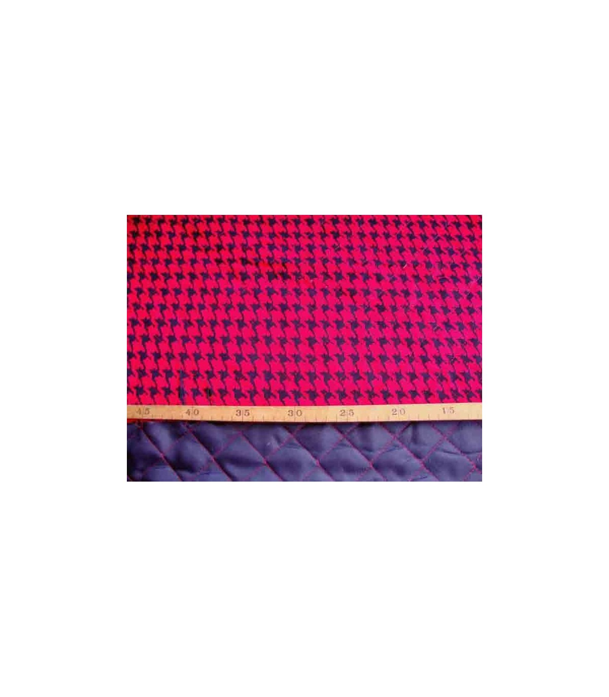 Een rood/zwarte pied de poule dubbel gewatteerde stof, dus ook geschikt voor jasjes en bodywarmers.