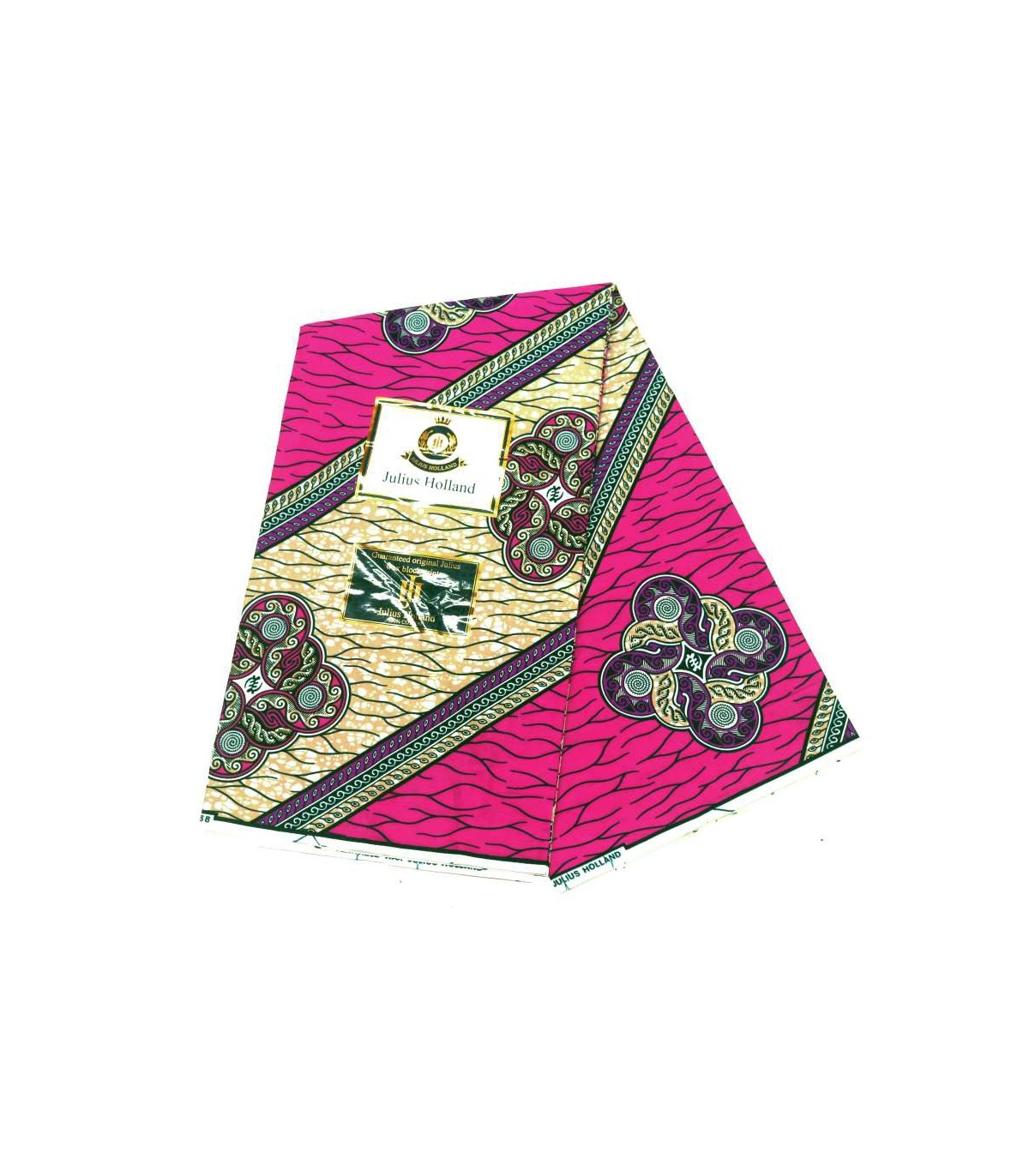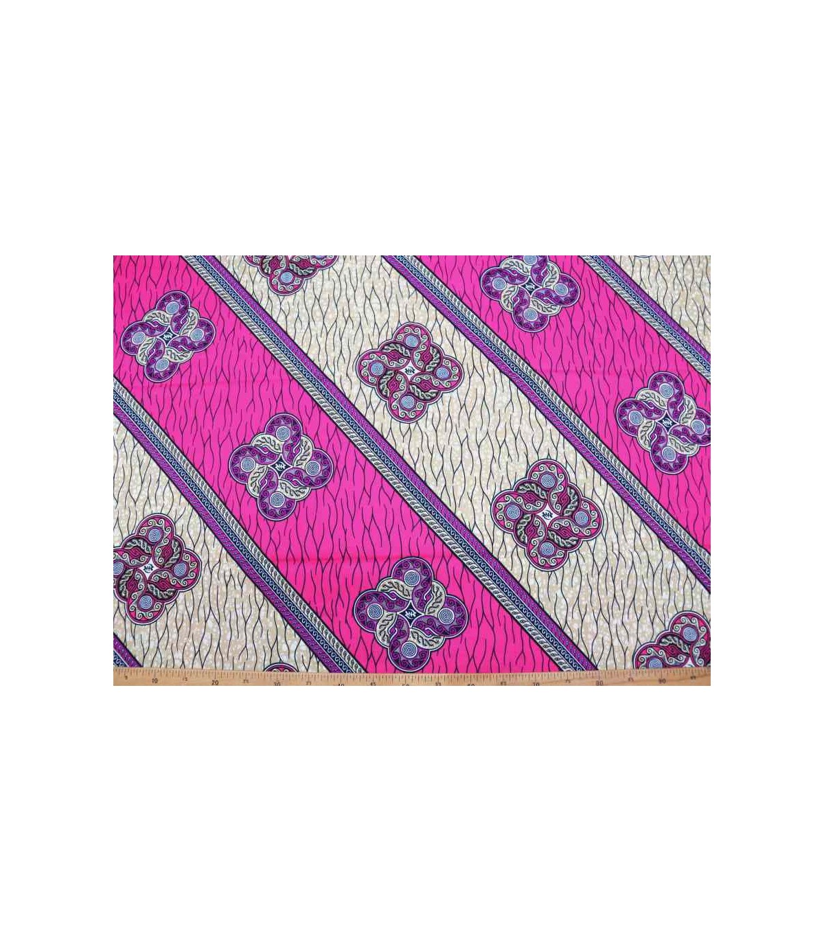 Afrikaanse stof met schuine banen en grote ornamenten.