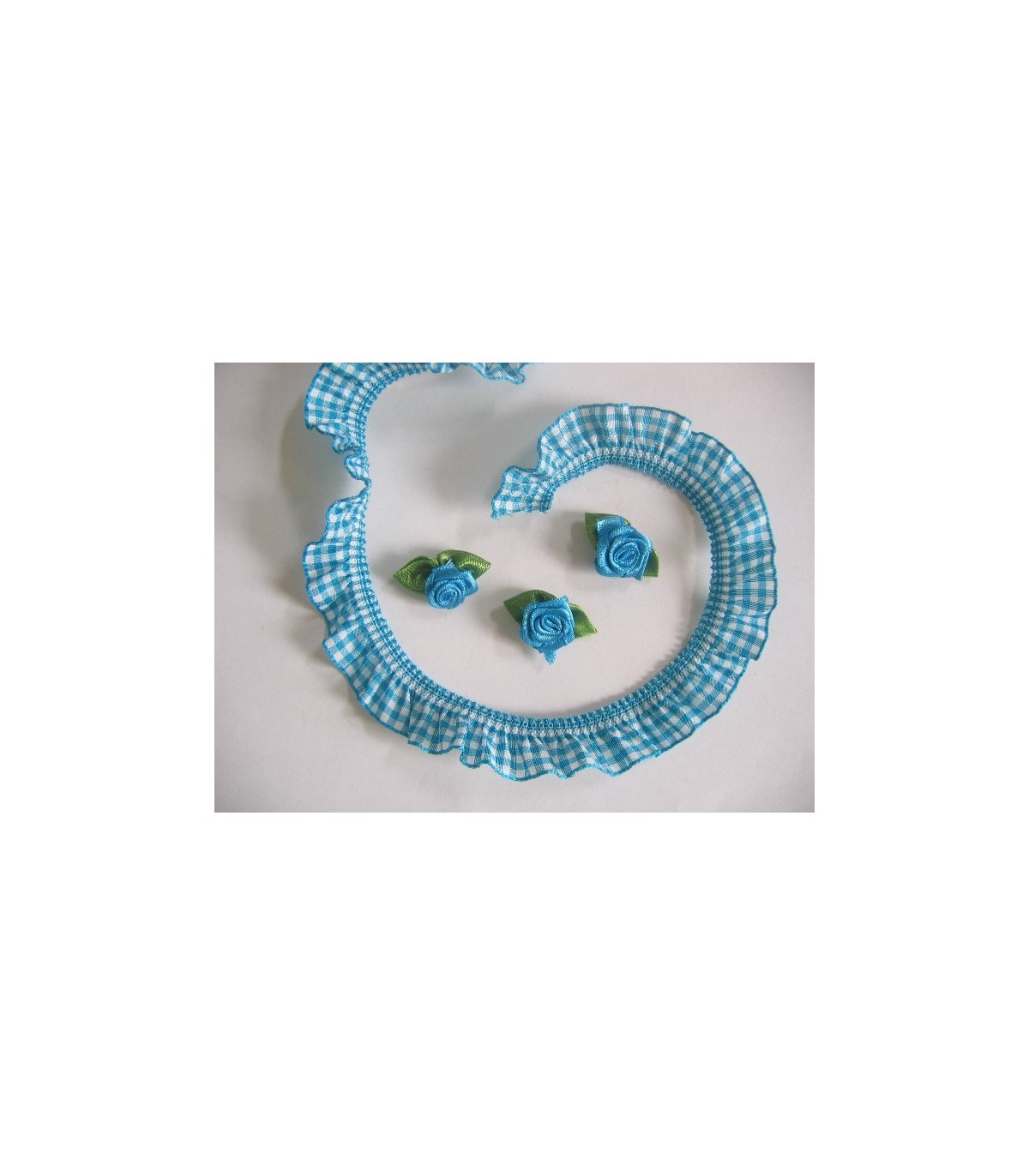 Elastisch kant boerenbont ruit Aqua 2cm
