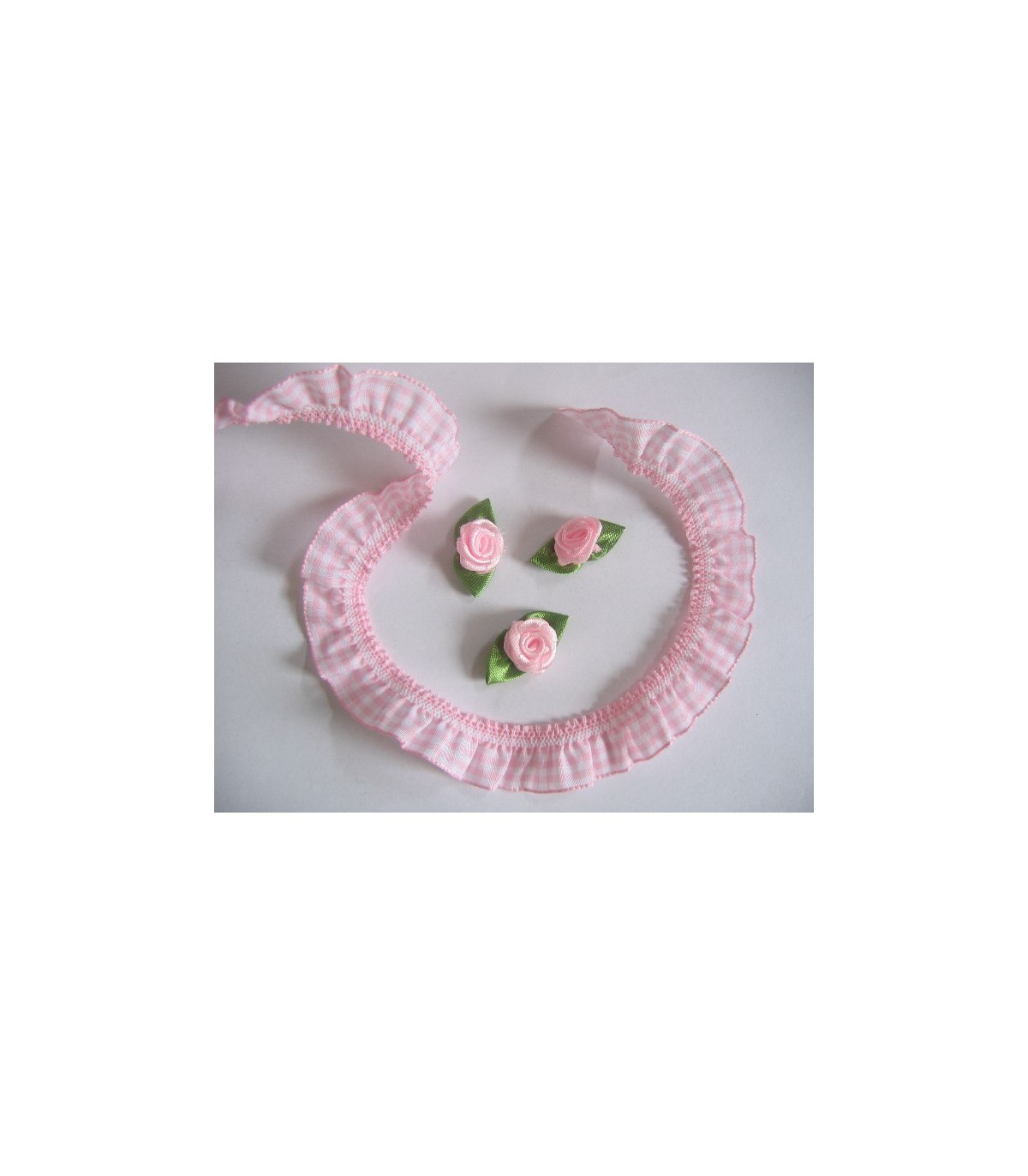 Elastisch kant boerenbont ruit Licht roze 2cm