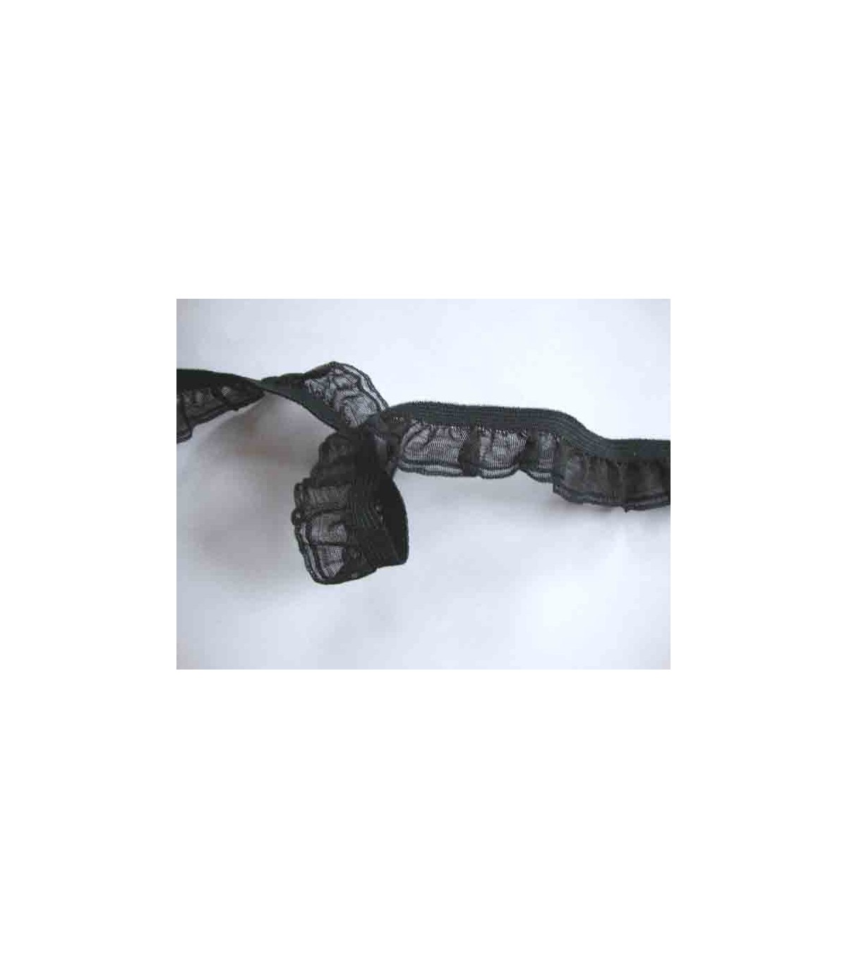Zwart elastisch ruchekant met een dubbele ruche.
