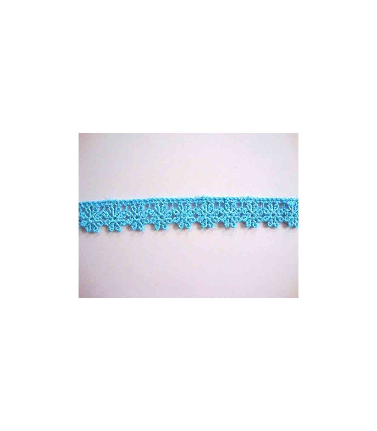 Een leuk aquakleurig opnaaibaar bloemen kantje van 18 mm breed