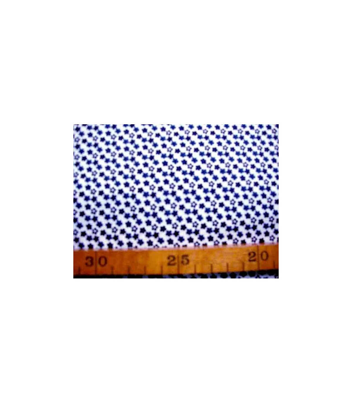 Een witte katoen met kleine oudblauwe bloemetjes.