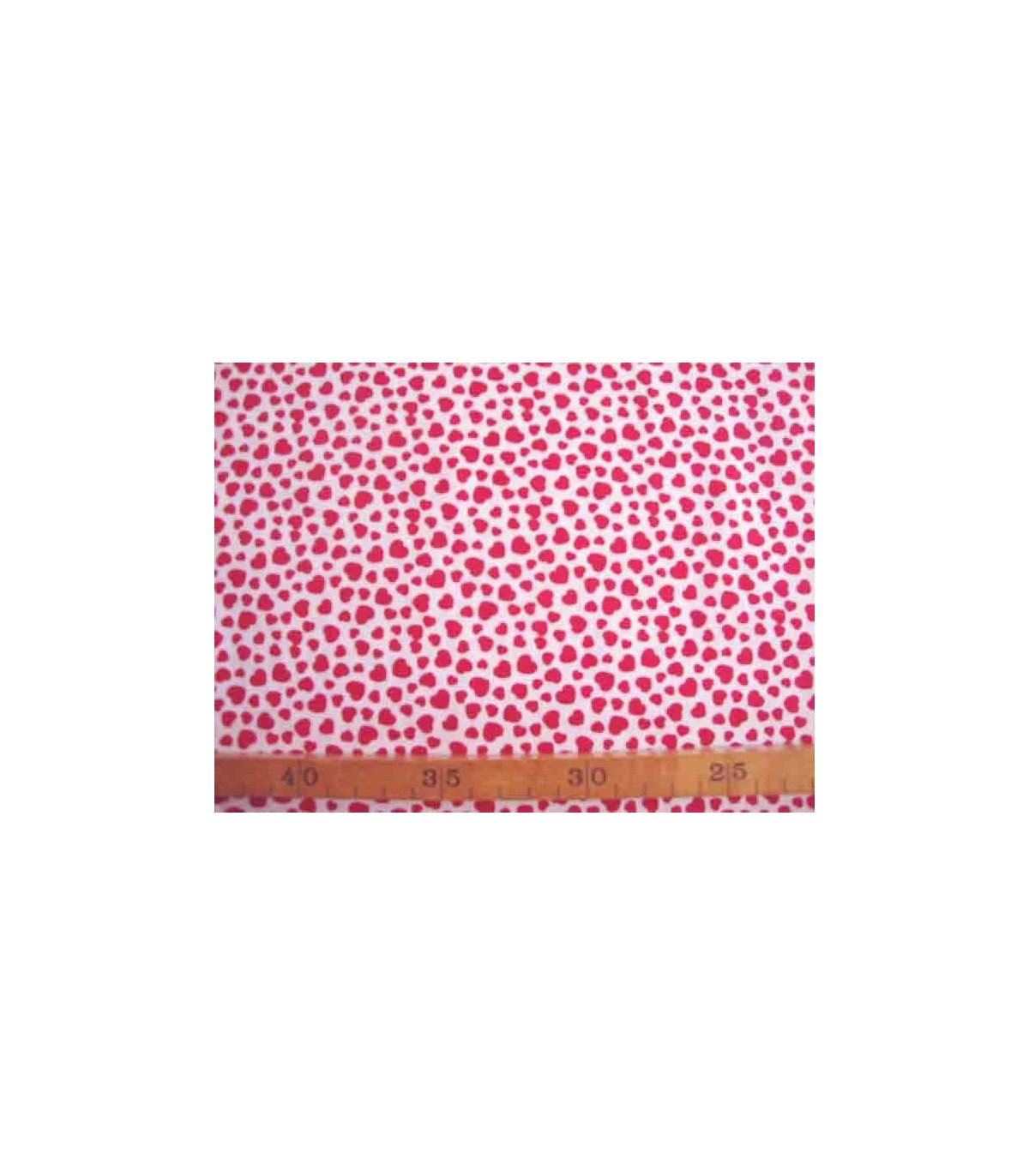 Witte katoen met rode mini hartjes.