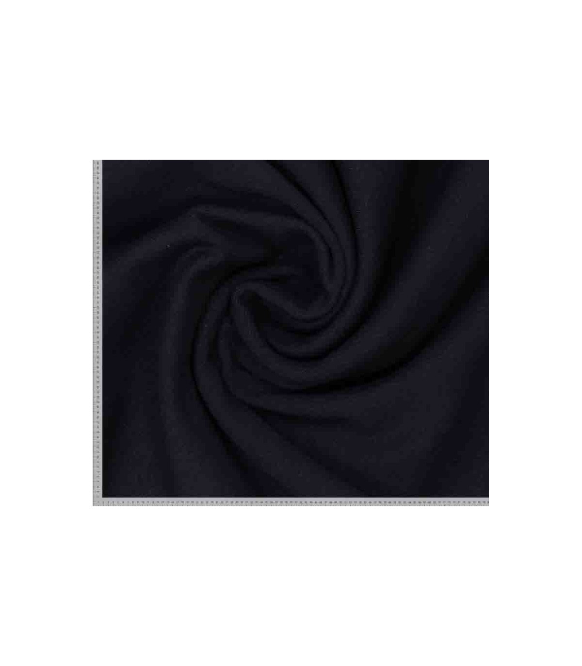Een soepelvallende, zwarte bamboo stof. Deels met gerecycled polyester.