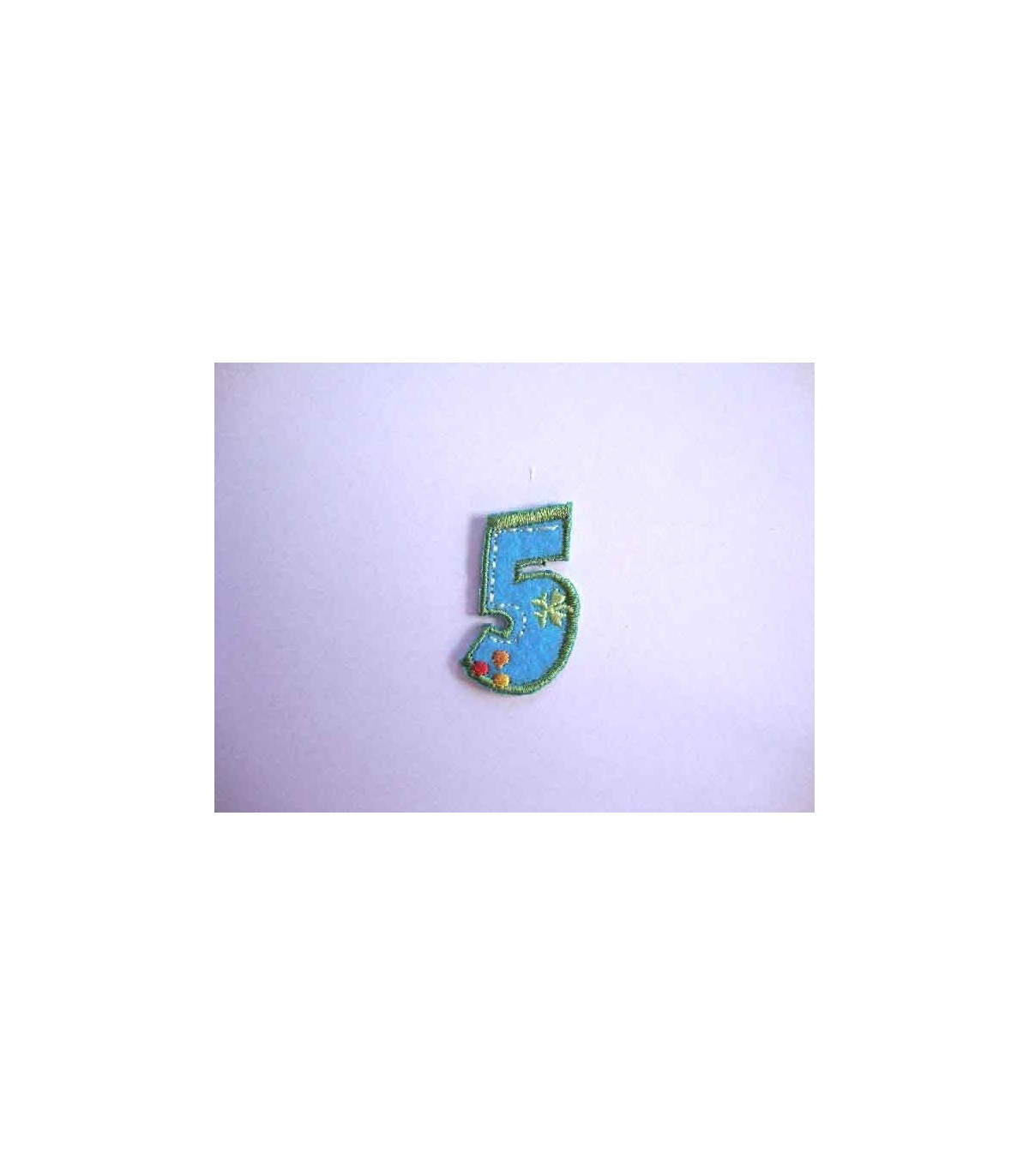 Een opstrijkbare applicatie met een doorsnee van zo'n 3 cm.