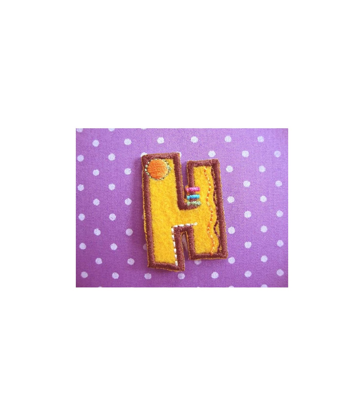 Een opstrijkbare applicatie met een doorsnee van zo'n 3 cm.