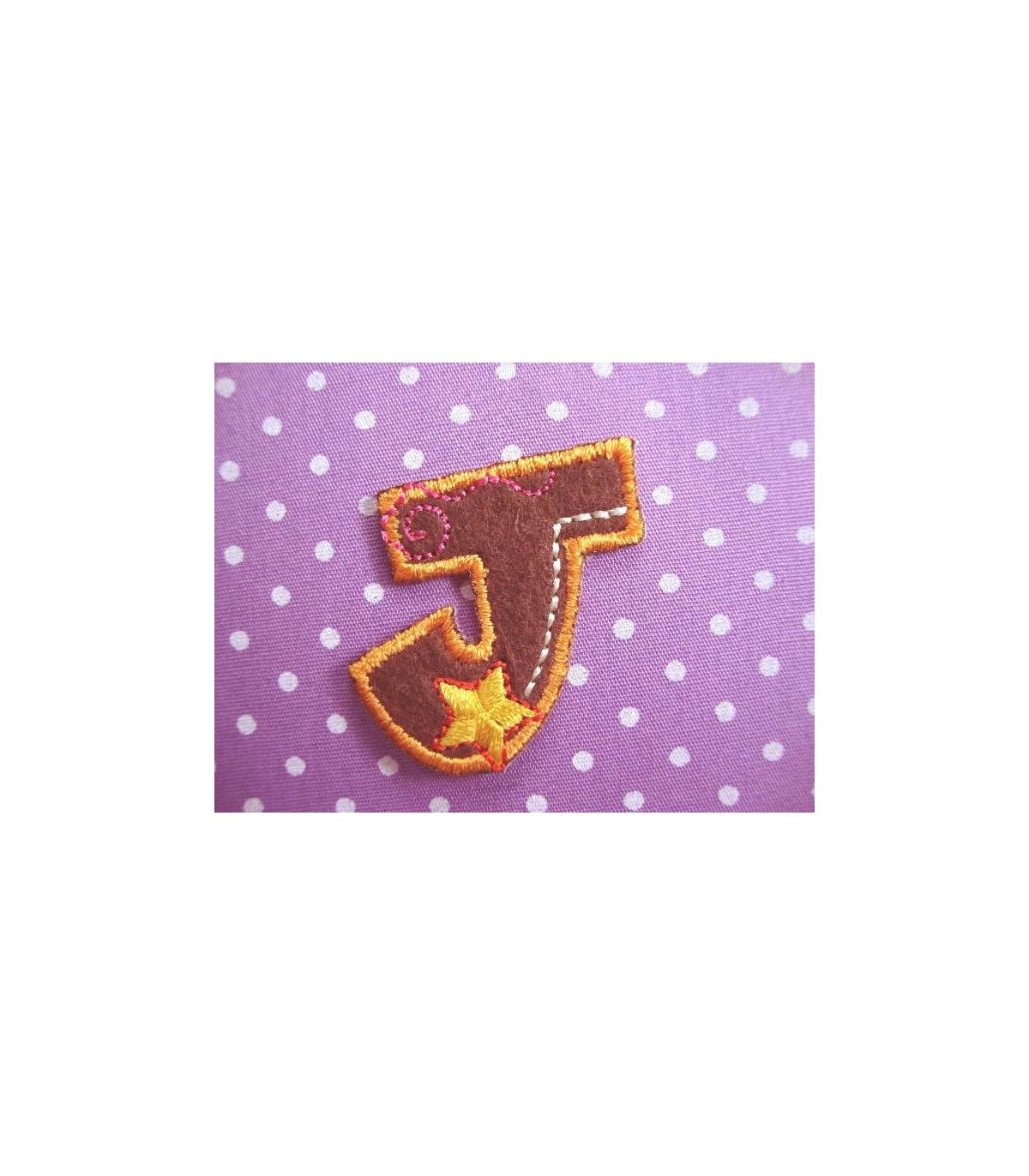 Een opstrijkbare applicatie met een doorsnee van zo'n 3 cm.