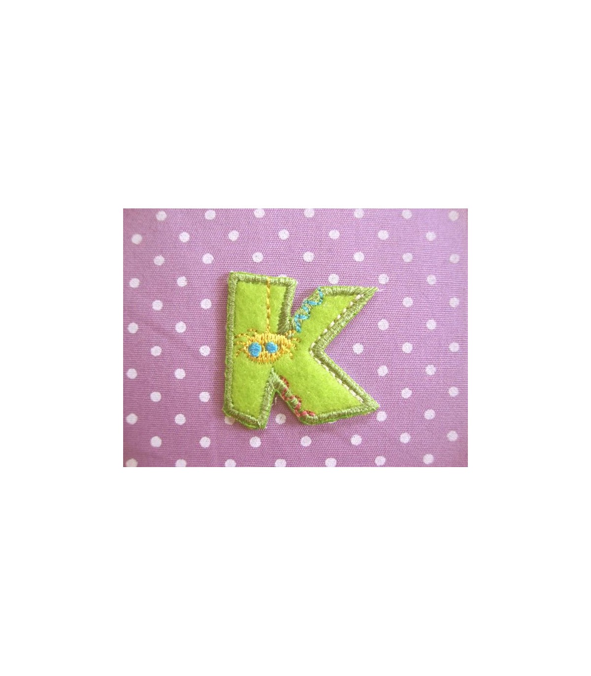 Een opstrijkbare applicatie met een doorsnee van zo'n 3 cm.