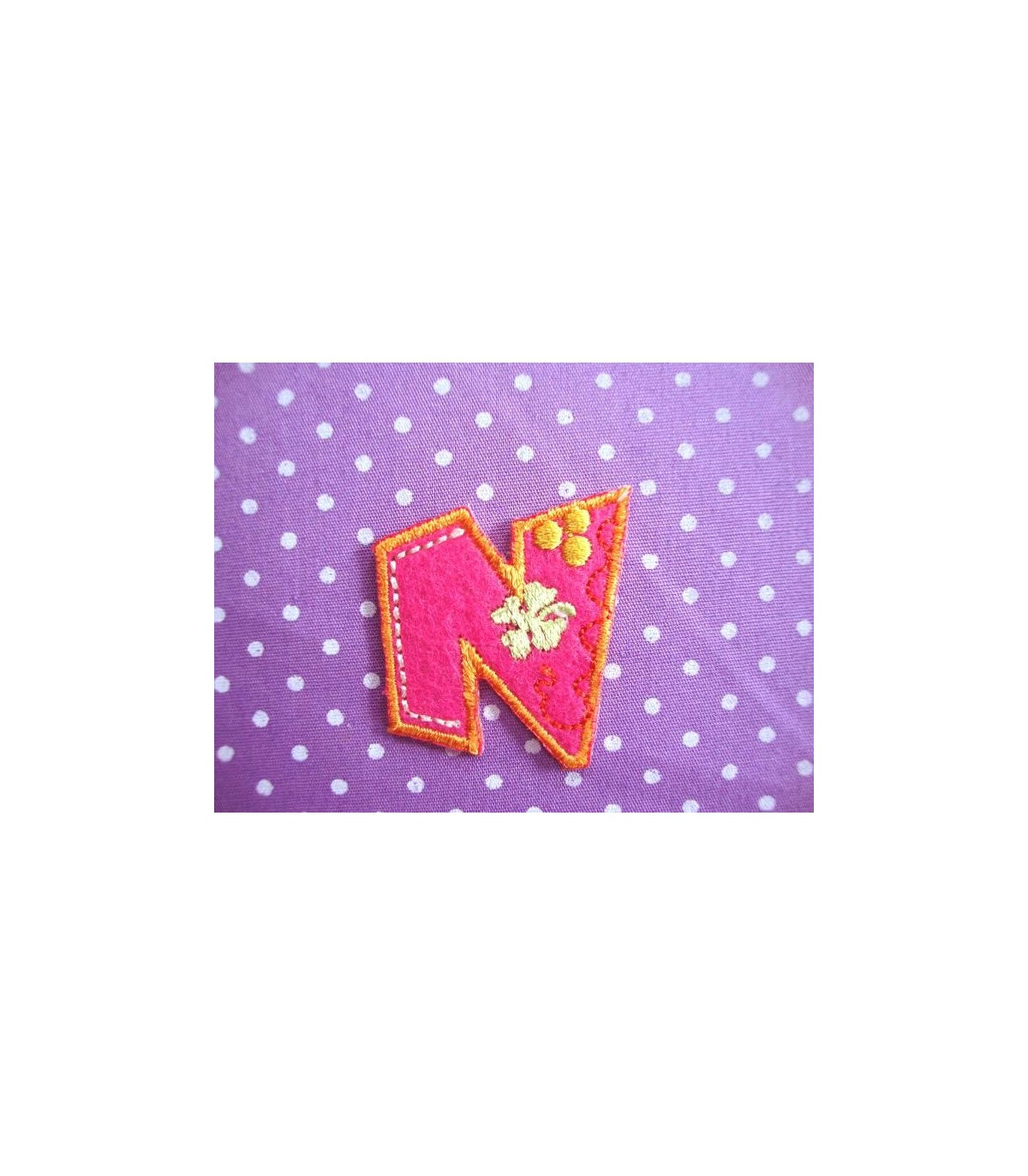 Een opstrijkbare applicatie met een doorsnee van zo'n 3 cm.
