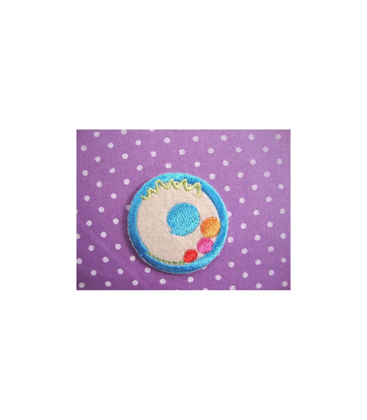 Een opstrijkbare applicatie met een doorsnee van zo'n 3.5 - 4 cm.