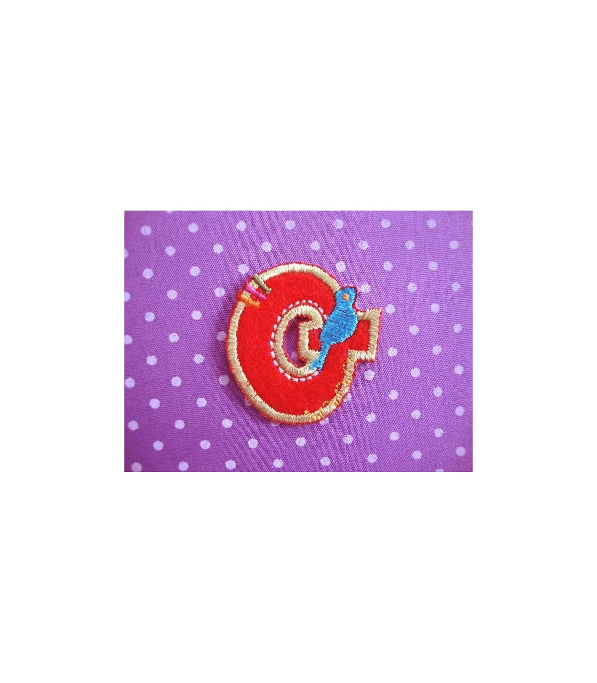 Een opstrijkbare applicatie met een doorsnee van zo'n 3 cm.
