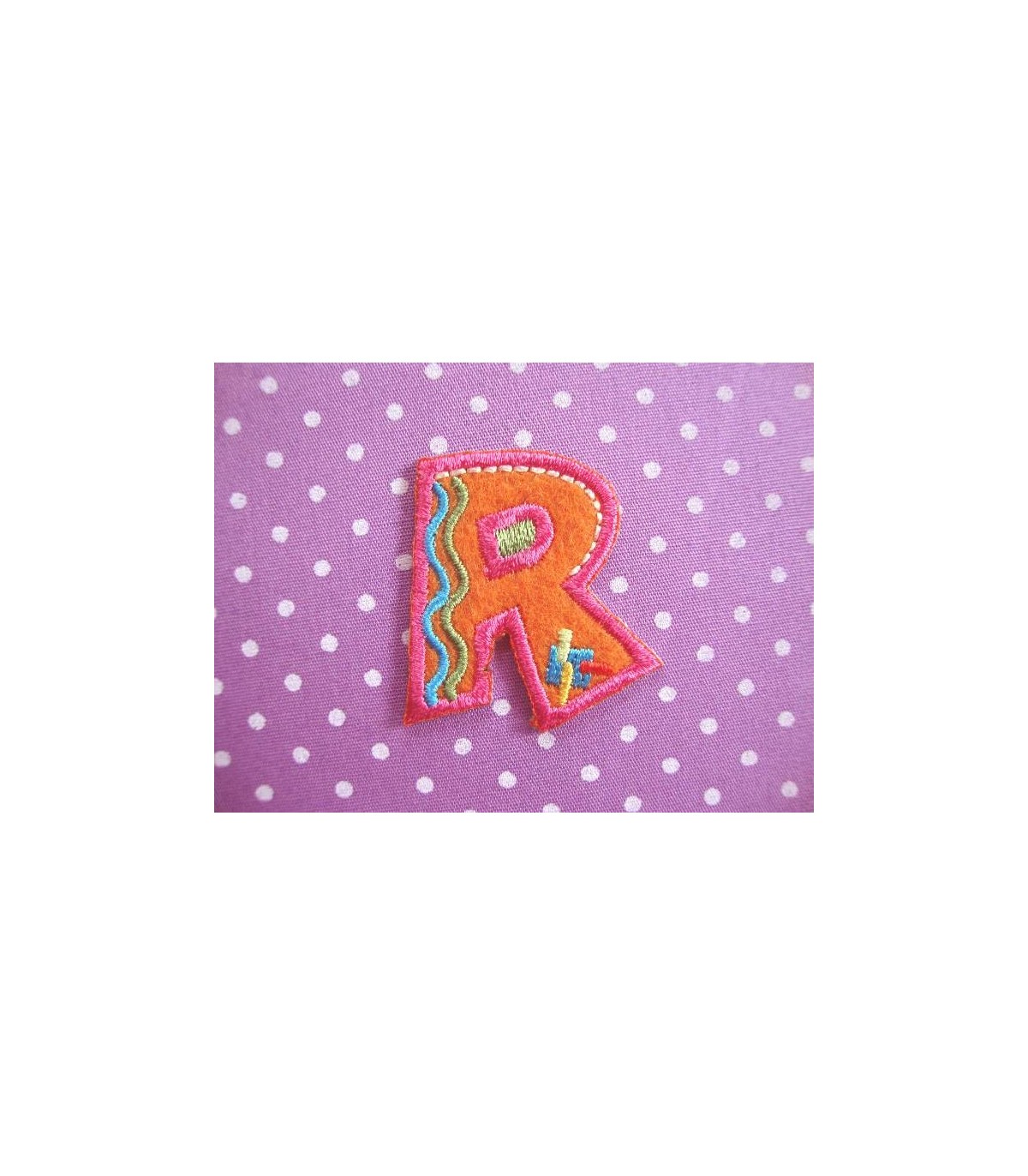 Een opstrijkbare applicatie met een doorsnee van zo'n 3 cm.