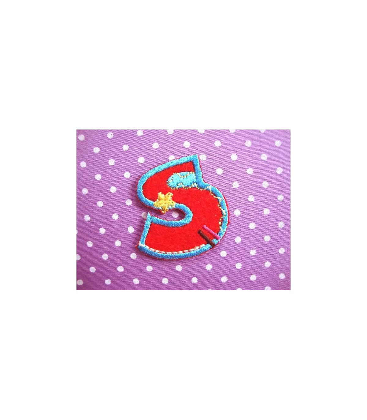Een opstrijkbare applicatie met een doorsnee van zo'n 3 cm.