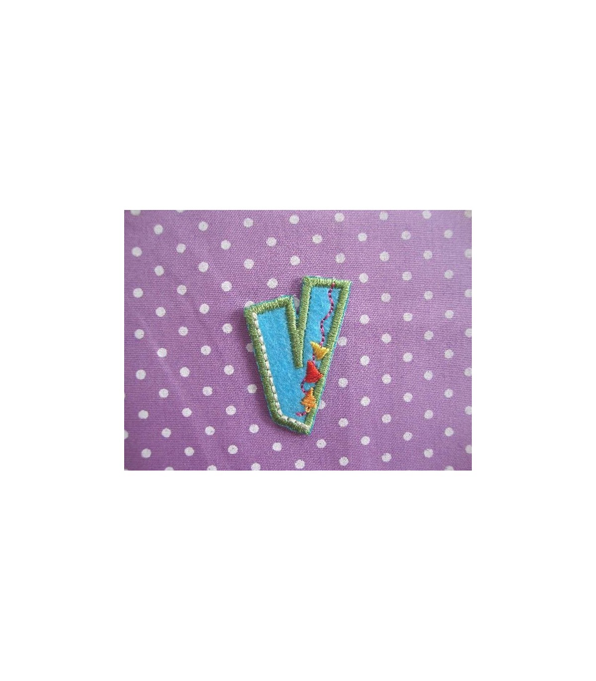 Een opstrijkbare applicatie met een doorsnee van zo'n 3 cm.