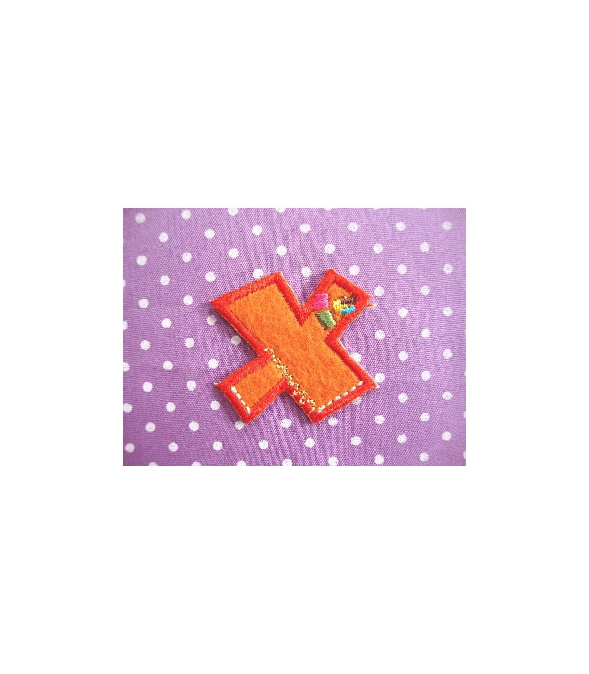 Een opstrijkbare applicatie met een doorsnee van zo'n 3 cm.