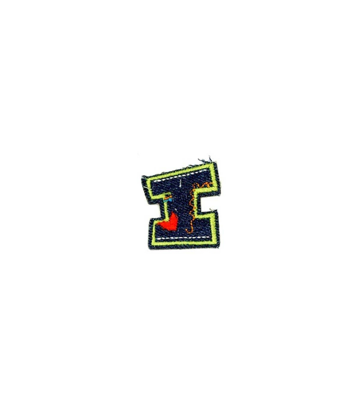 Een opstrijkbare letter I applicatie met een doorsnee van zo'n 3 cm.