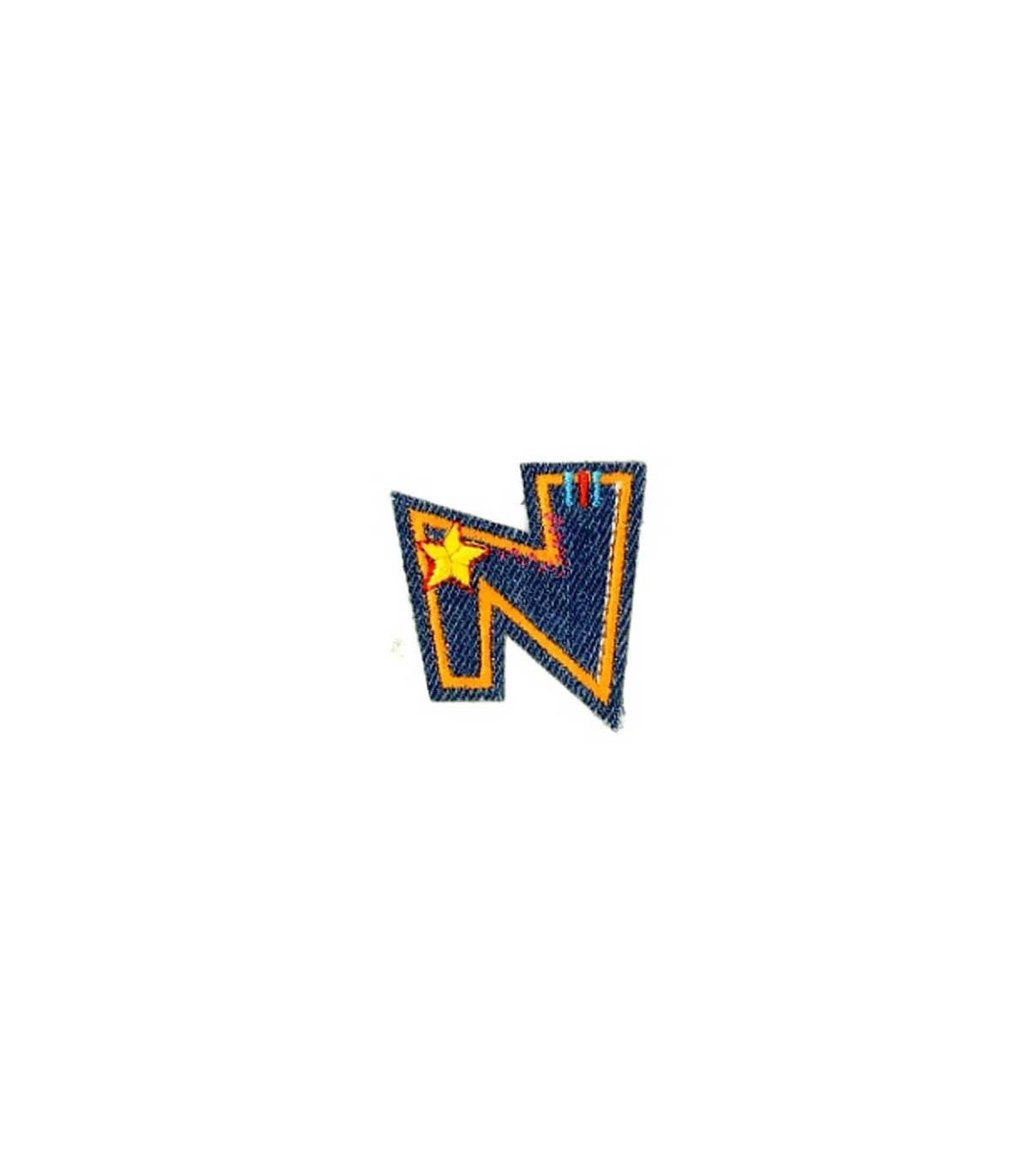 Een opstrijkbare letter N applicatie met een doorsnee van zo'n 3 cm.