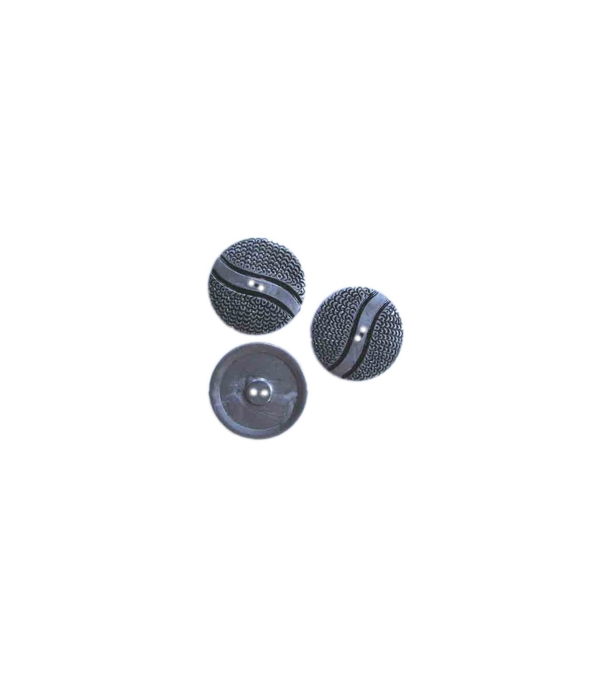 Grote zilverkleurige kunststof knoop met golf. 50 mm doorsnee
