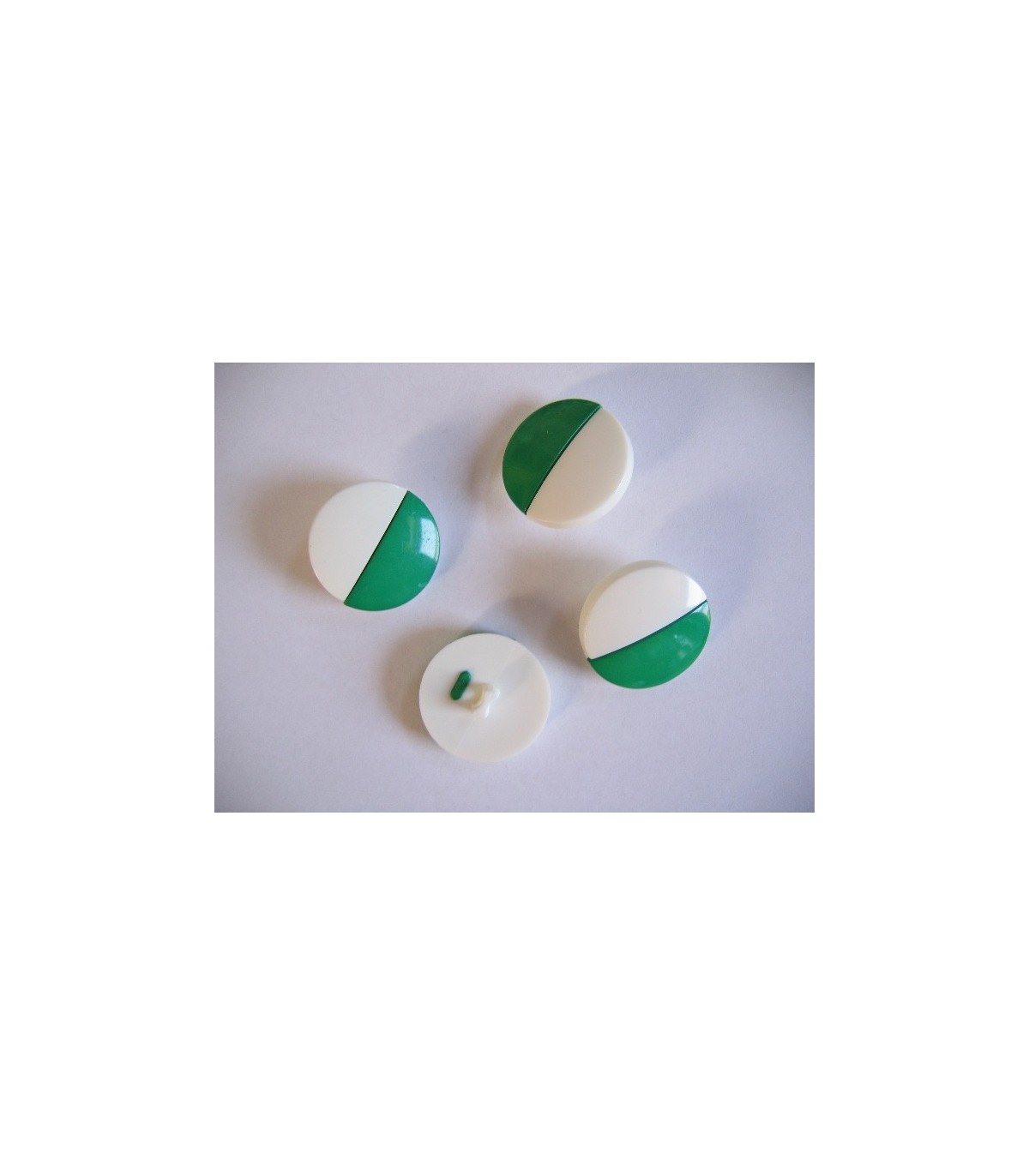 Groen/witte kunststof knoop. 23 mm. doorsnee