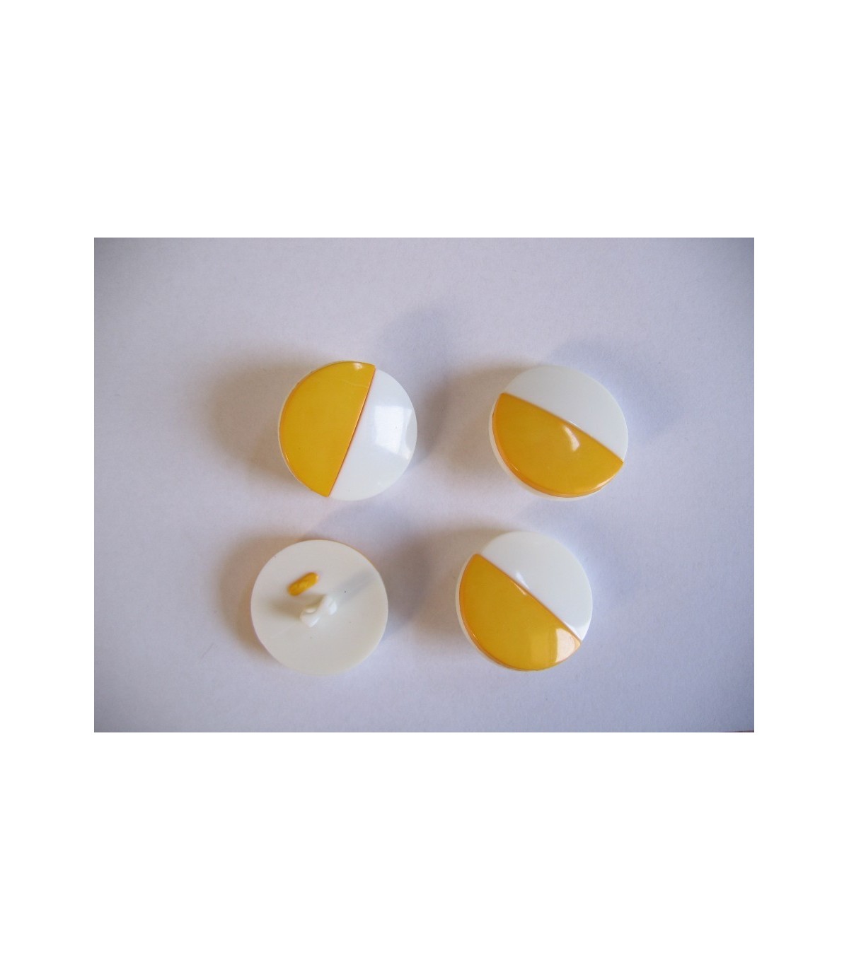 Geel/witte kunststof knoop. 23 mm doorsnee.