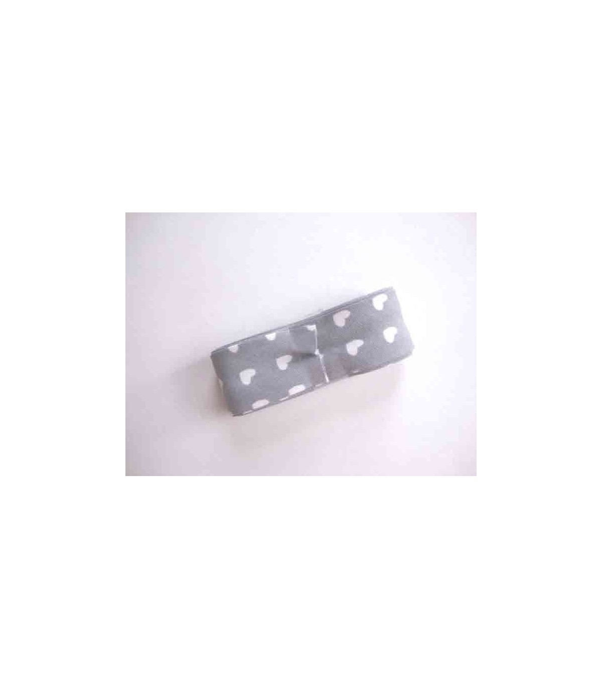 Een bundel biaisband van 2 meter lang. Grijs met witte hartjes. 2 cm. breed