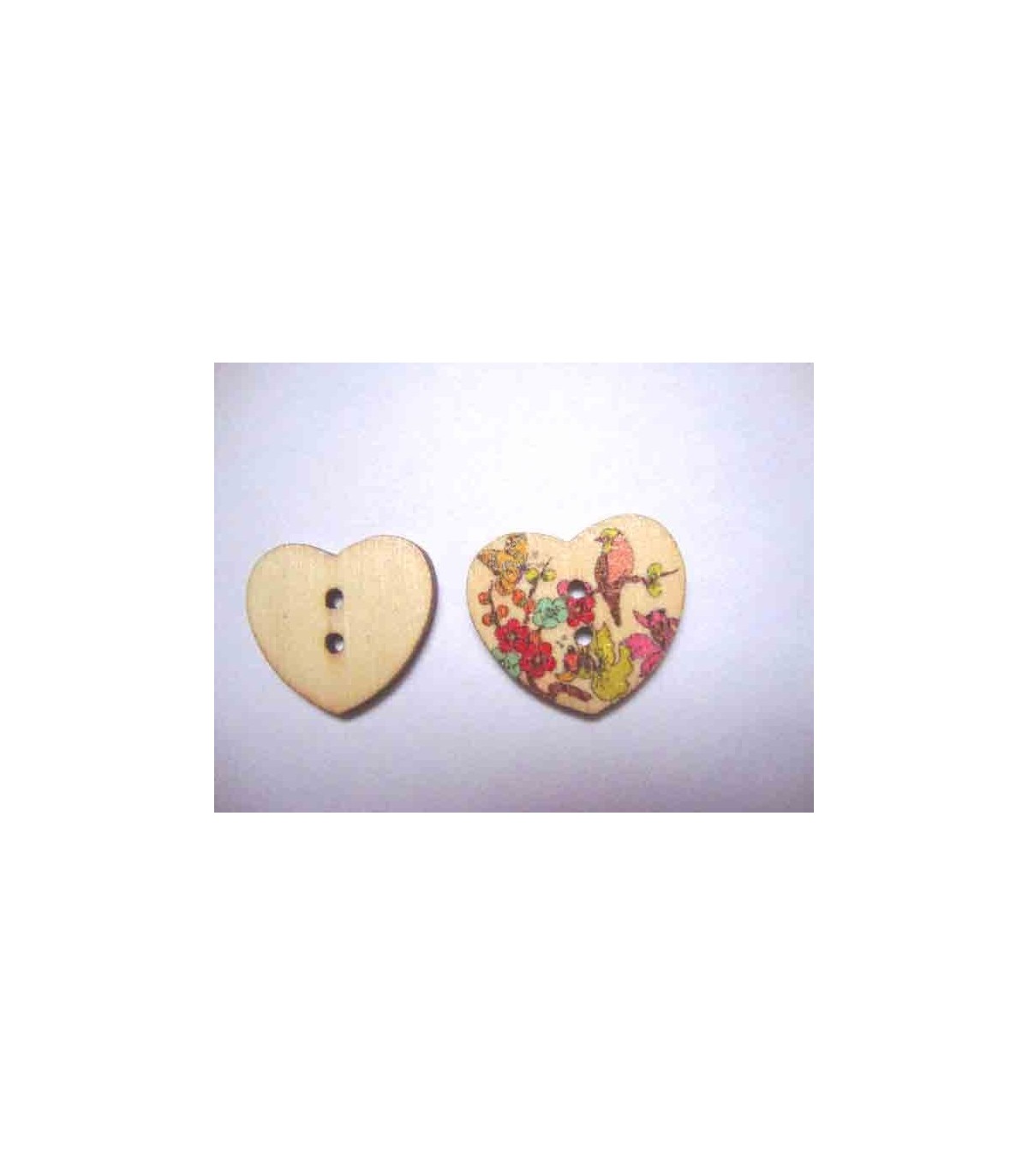 Houten knoop van een hartje met verschillende prints in diverse kleuren