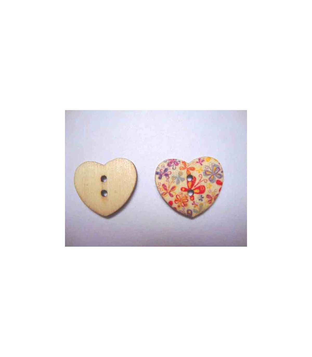 Houten knoop van een hartje met verschillende prints in diverse kleuren
