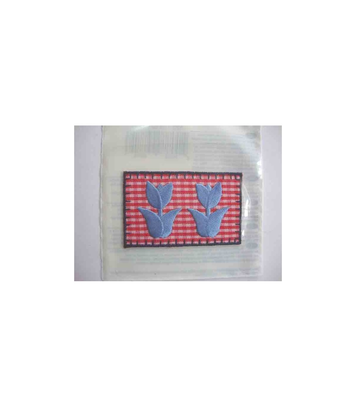 Opstrijkbare applicatie rode ruit met 2 tulpen