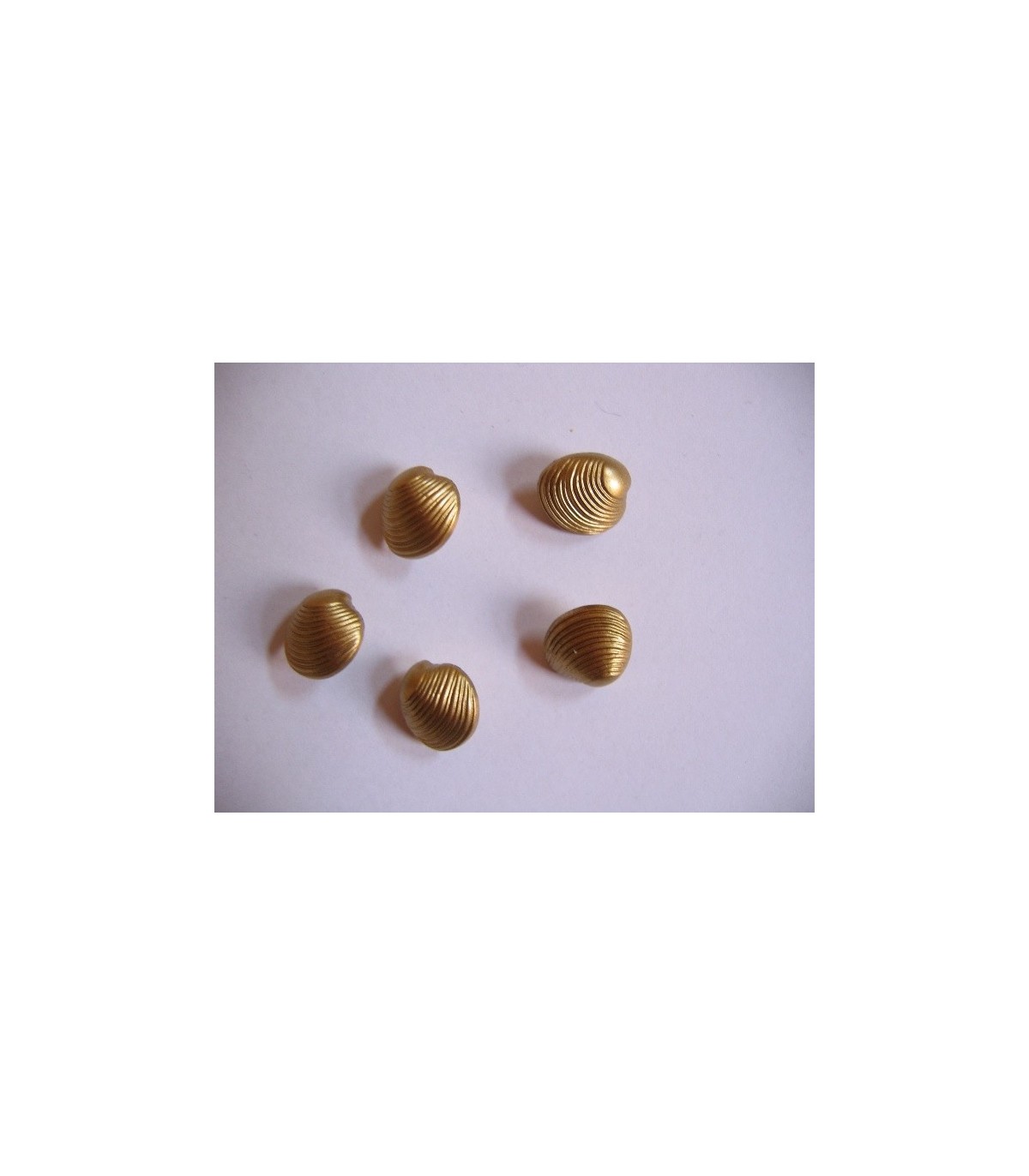 Goudkleurige kunststof Jacobsschelp knoop. 15 mm. doorsnee.
