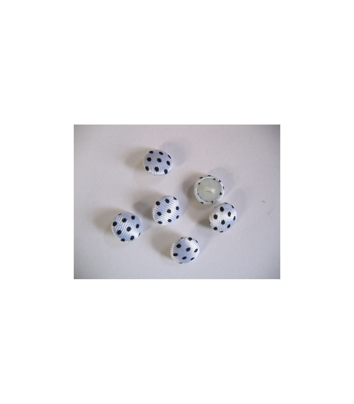 Stofknoop wit met zwarte stip. 15mm. doorsnee