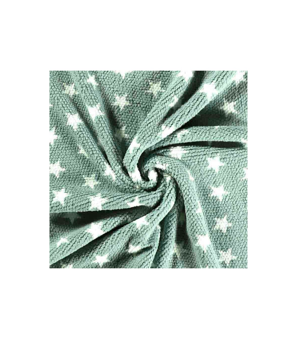 Honeycomb fleece oudgroen met witte sterren met een doorsnee van 5 cm