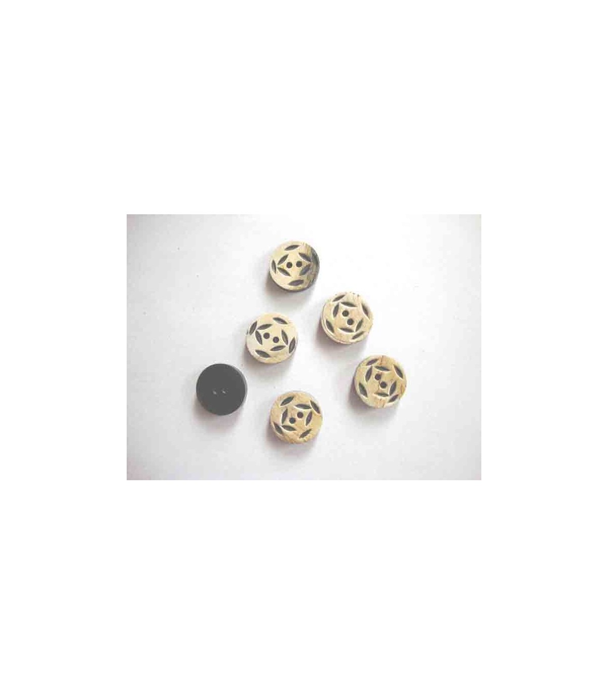 Ronde bewerkte knoop van hoorn met een doorsnee van 15 mm.