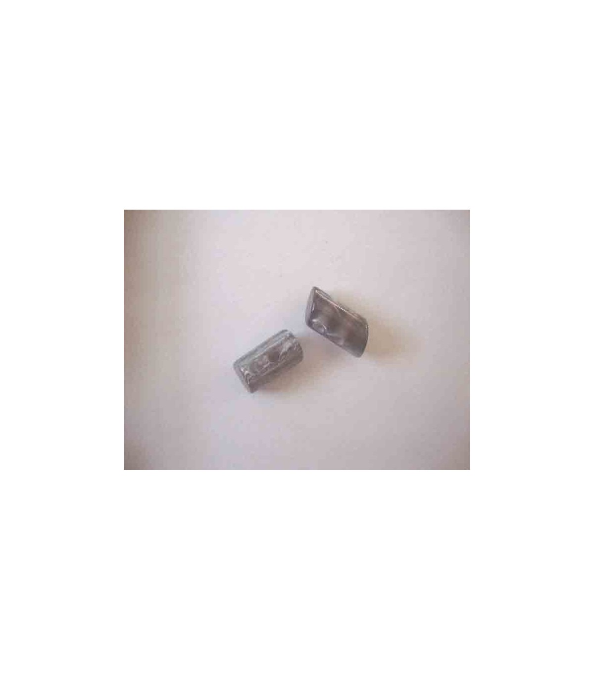 Een grijze 2 gaats hoorn knebelknoop. van 22mm. lang en 10 mm. doorsnee