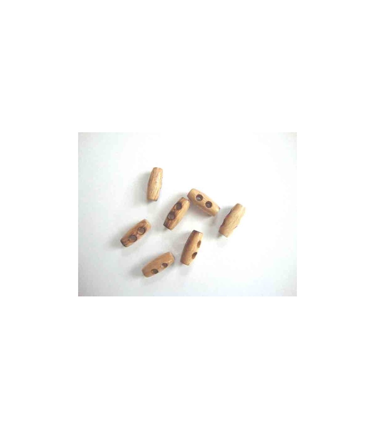 Een 2-gaats houtje/touwtje knoop. 20 mm. lang
